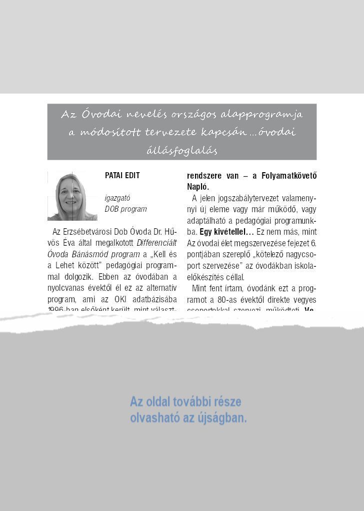 Hírek az Óvódai nevelés alapprogramról 6 oldal | |||||||||||||||