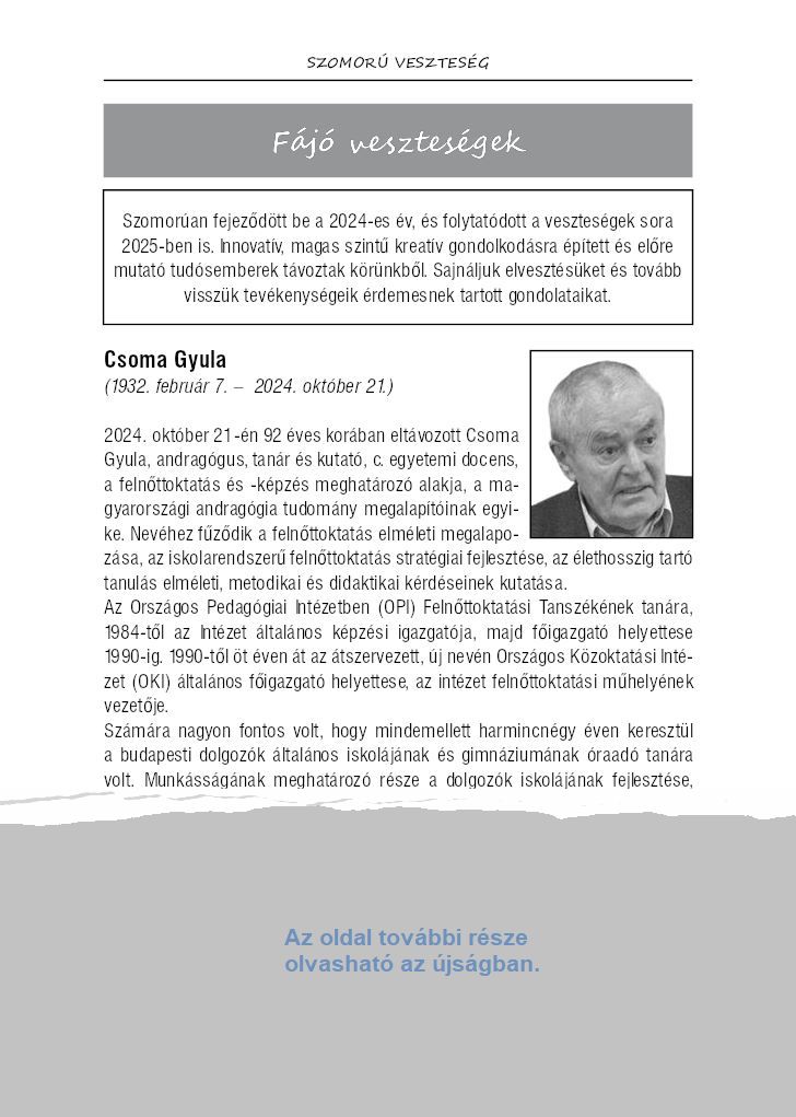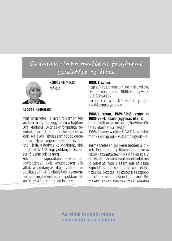 Változások - Önálló tanulási folyamat szükségessége felnőttként + ajánlás | Részek az újság oldalaiból, cikkeiből | |||||||||||||||||