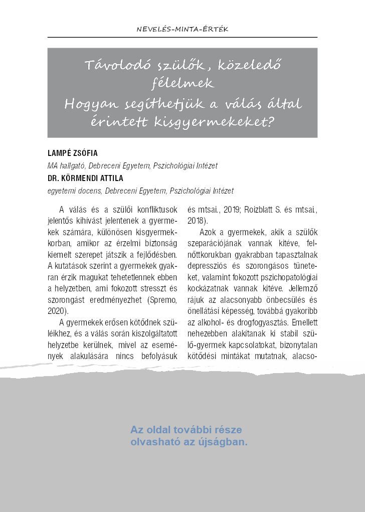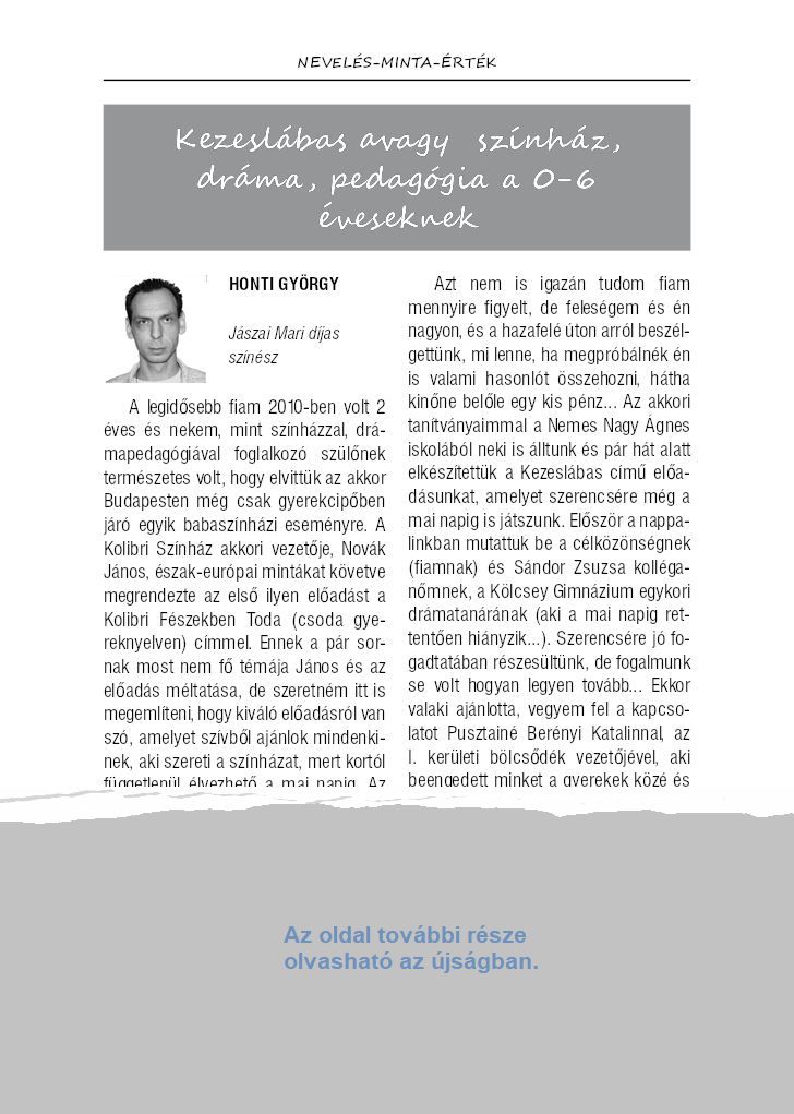 | Címlap | Belül | Zárólap | Vekerdy Tamás 85 éve született | Sanyi Manó emlékezete (1./2 oldal) | A nevelési tanácsadók fél évszázada (3.rész) (1./5 oldal) | Játék és tanulás online világban (1./3 oldal) | Online oktatáshoz - SNI és ált.isk. alsó tagozatában (2.rész) (1./4 oldal) | A férfi kisgyermeknevelők megítélése Magyarországon (1./3 oldal) | Jógázó szülők - Jógázó csemeték | Faműves mesterségek | Mit tegyek? (levelező rovat) (1./3 oldal) | Fájó veszteségek | Pedagógus nagymama | ||||||||
