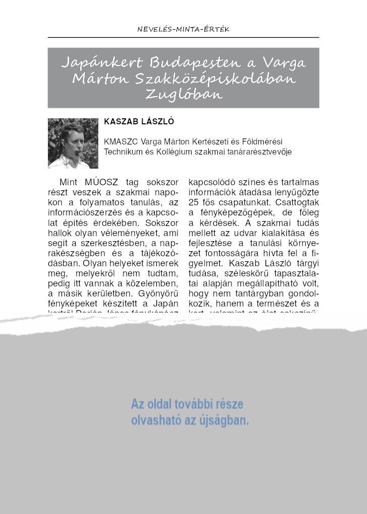 | Címlap | Belül | Zárólap | Természettudományi ismeretek | Japánkert Zuglóban | Zilahi Józsefné Gál Katalin | |||||||
